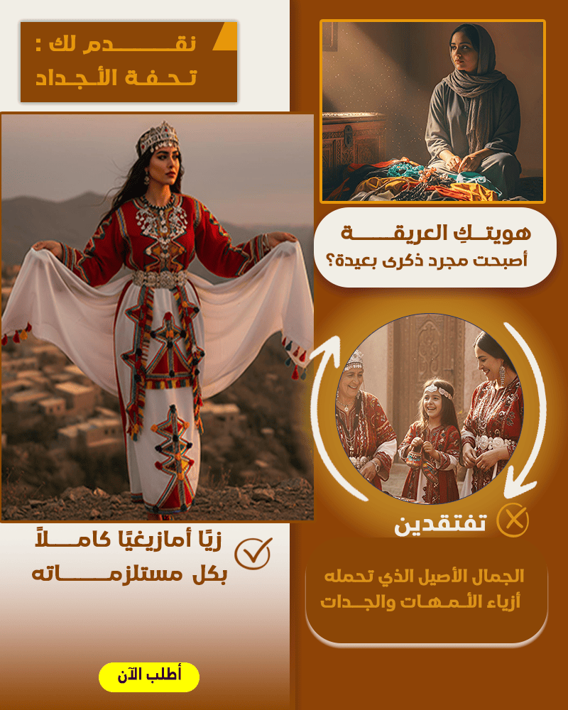 اطلبــــــي الآن الطقم الأمازيغي النادر الكامـــــــــل، وارتدي الإرث بحضورٍ لا يُنسى.