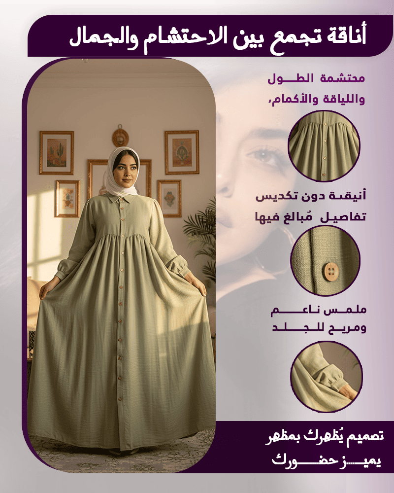 وفي نفس الوقت يمنحك مظهراً راقياً يحترم أنوثتك واحتشامك.