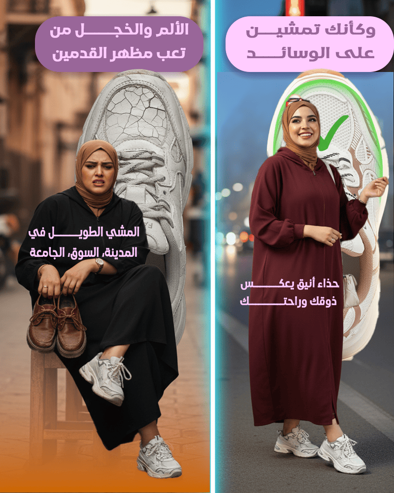ترغبين في حــــــــــــــذاء أنيق يعكس ذوقـــــــــــــــــــك كشابة ، لكن غالباً ما تواجهين إما تصاميم جميلة وغير عمليّة، أو أحذية مريحة لكن مملة أو تفقد شكلها بعد الموسم.